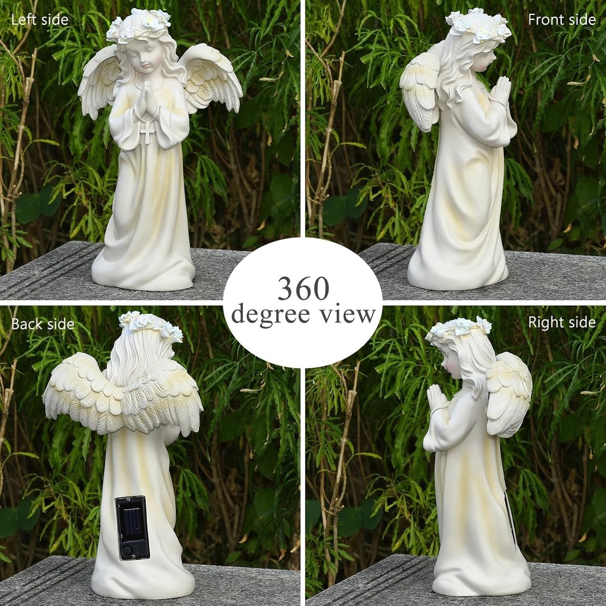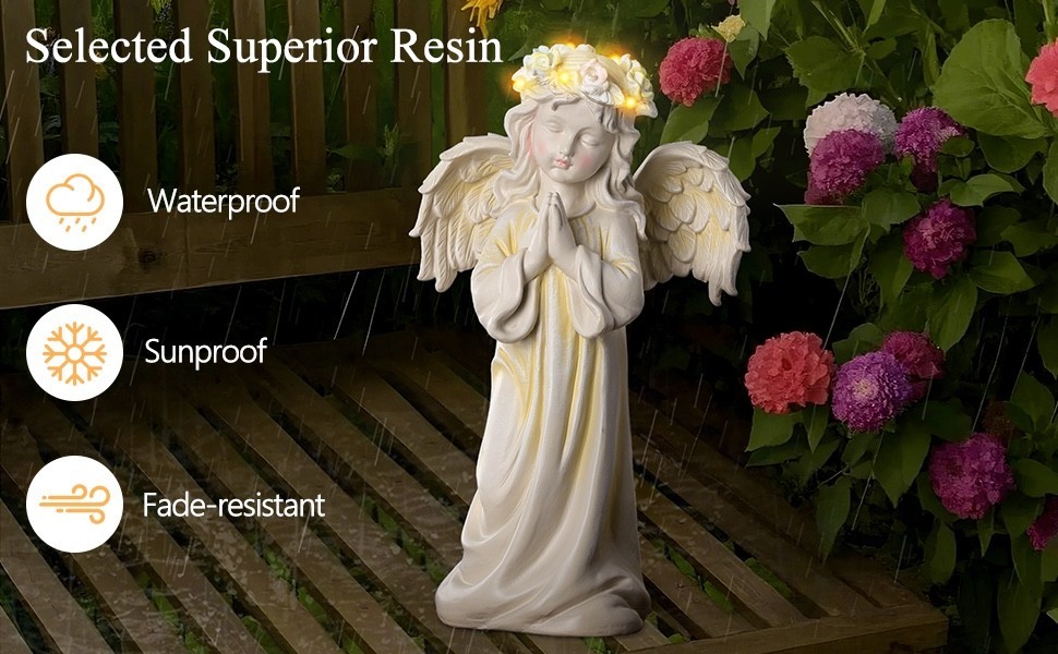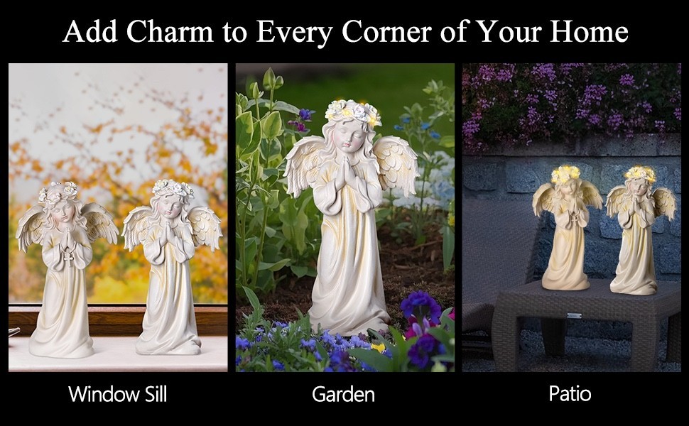 Creates Peaceful Ambiance ? The angel's serene praying pose and gentle crown of flowers that light up at dusk bring tranquility to your garden space.