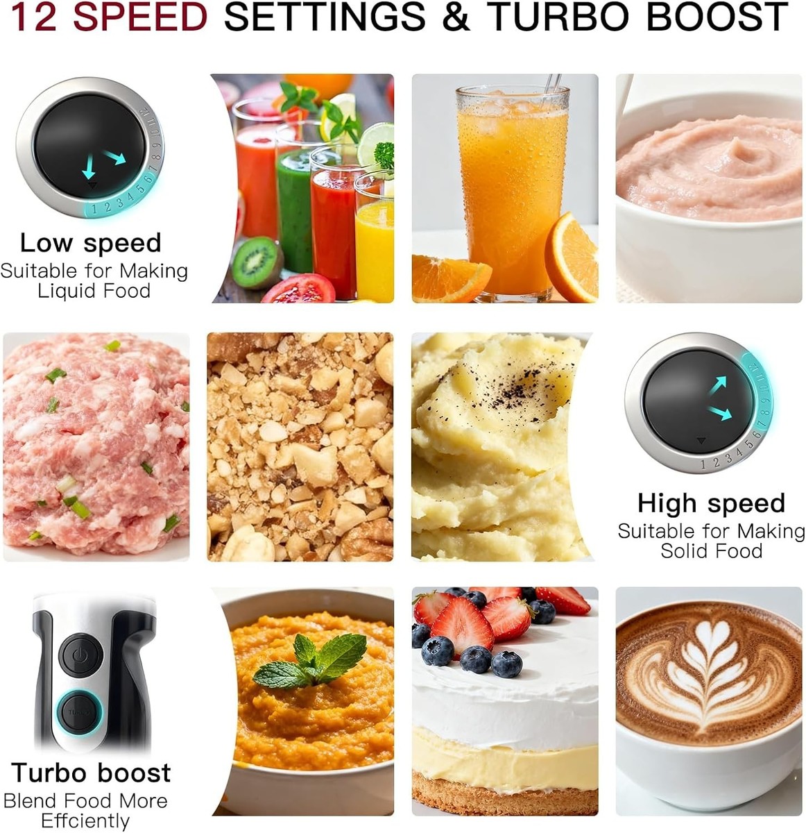 Versatile 12-Speed Immersion Blender Set - Blends, Whips, Froths Effortlessly