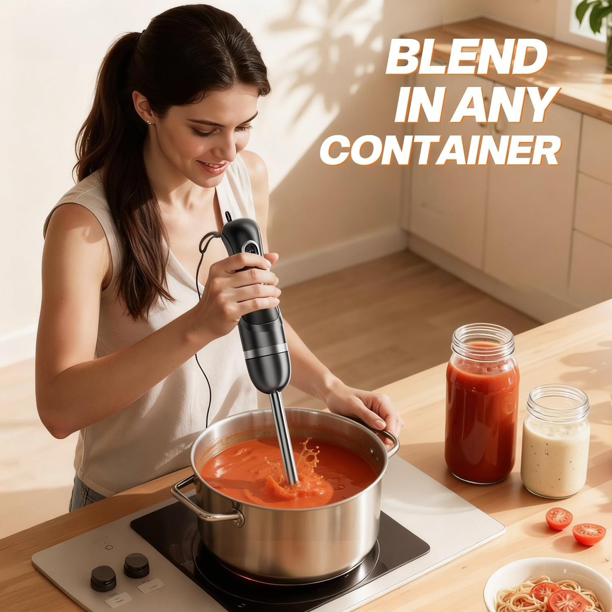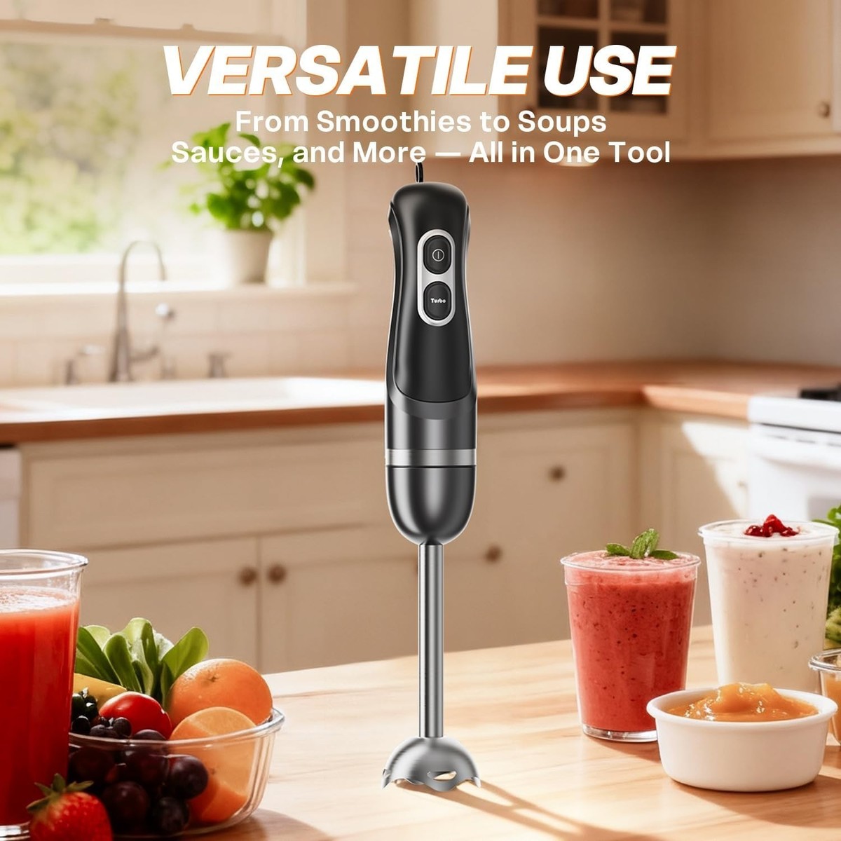 BLEND IN ANY CONTAINER: Extra-long blending stick allows dynamic use in jars, deep pots, bowls, and more.