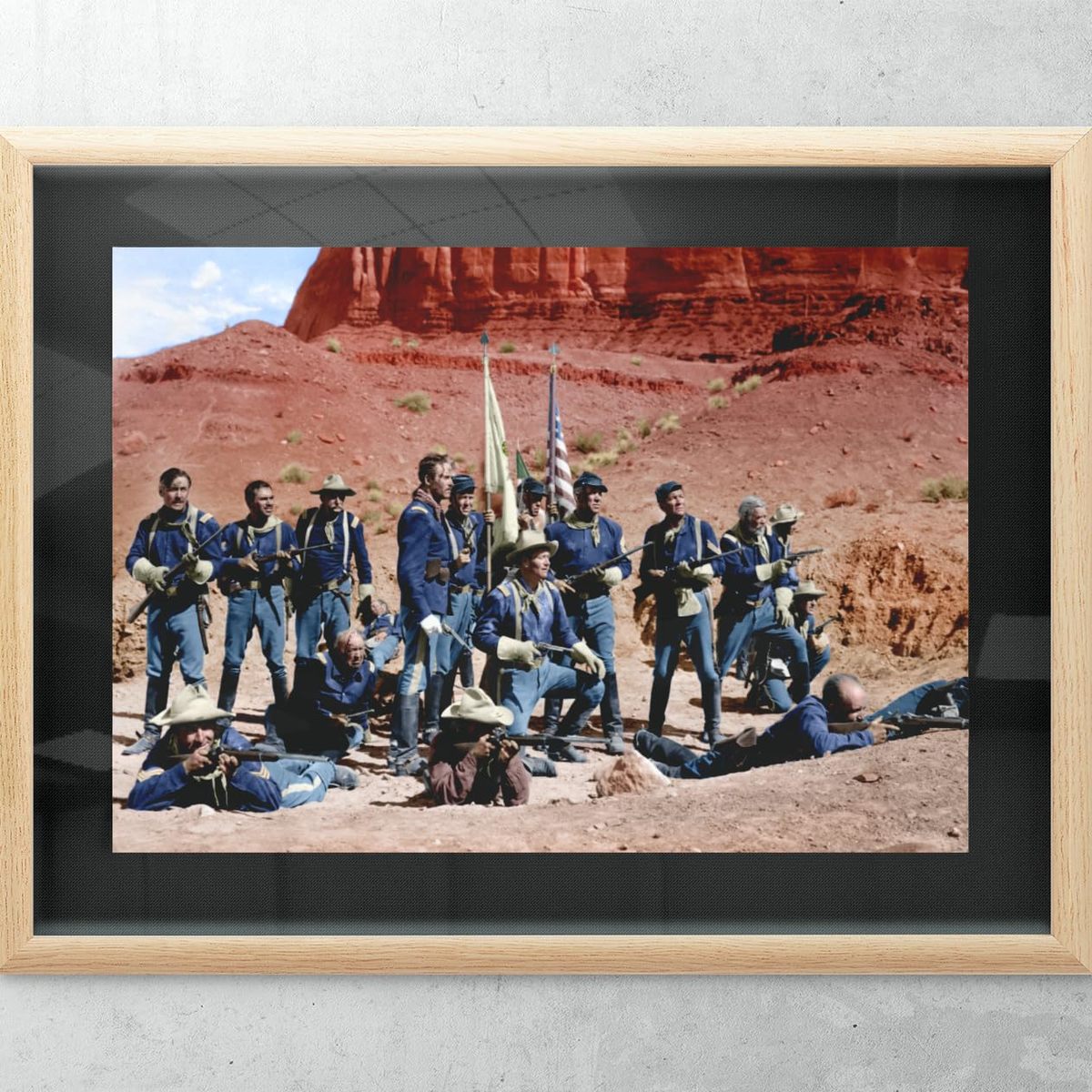 Product description: The iconic American West comes alive with this stunning 8.5" x 11" photograph from the classic Western film 'Fort Apache'. This high-quality print captures a breathtaking desert landscape scene, showcasing the rugged red rock formations and dramatic staging that made John Ford's film legendary. Perfect for film enthusiasts, Western movie collectors, or anyone looking to add a piece of cinema history to their wall decor. The photograph is produced in the USA, ensuring premium print quality that brings out the rich details and atmospheric depth of this memorable scene. This archival print serves as both a collectible piece of movie memorabilia and a dramatic artistic statement that celebrates the golden age of Western films.
