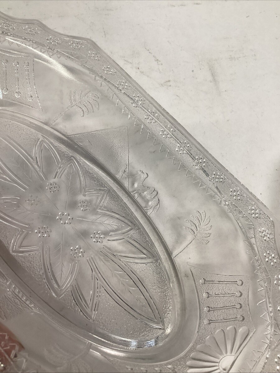 3 EAPG Antique Adams & Co 1880’s Egyptian Sphynx Camel Pyramid Motif Candy Dish