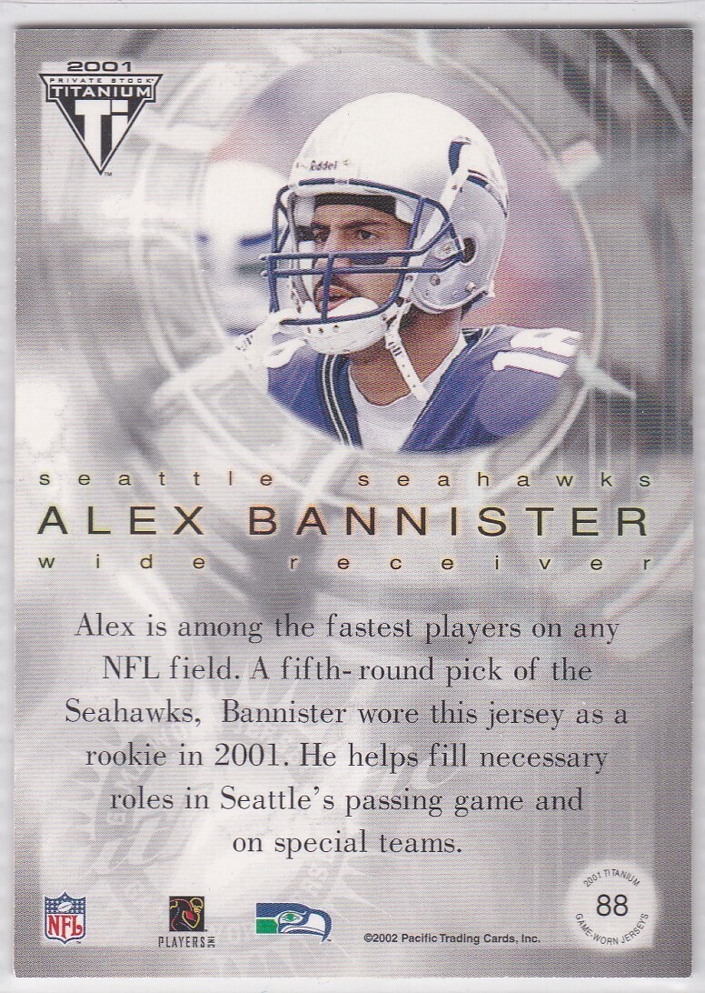 G 2001 Pacific Titanium Football Trading Card Alex Bannister 88 Game Worn Jersey