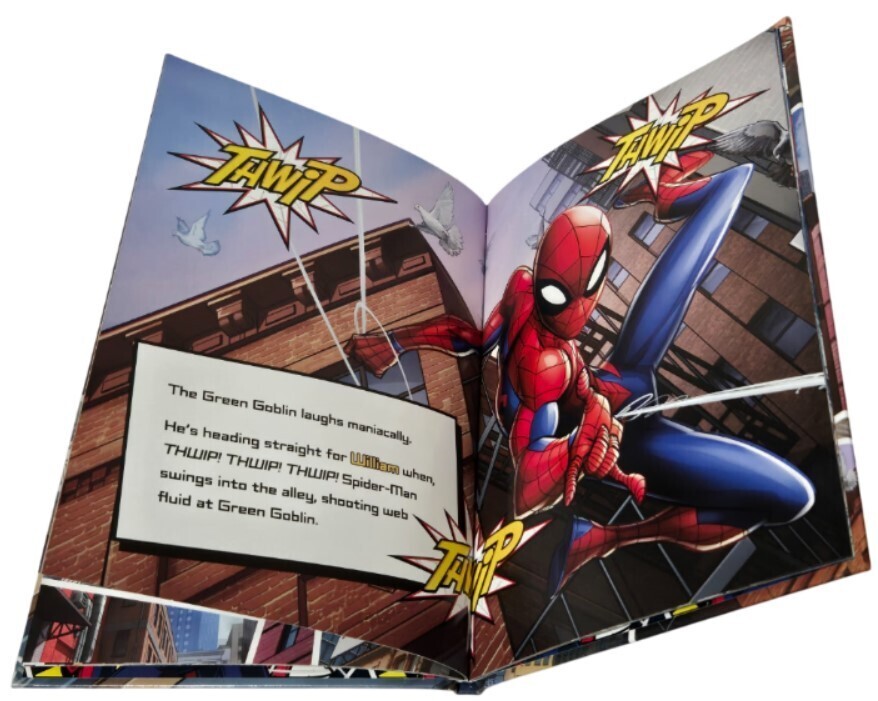 Is there a little hero in your life named William? This is the perfect personalized gift for any young Marvel fan! In this "Amazing" adventure, William doesn't just watch the action?he's part of it. When the Green Goblin attacks a school field trip, Spider-Man swings in to save the day, but he needs a little help from his friend William to finish the job.