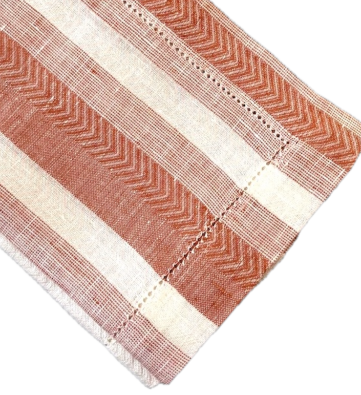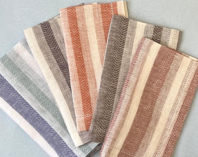 Sferra Ascot Dinner Napkins 6 PC. Herringbone Stripe Linen w/Hemstitch 20x20 New