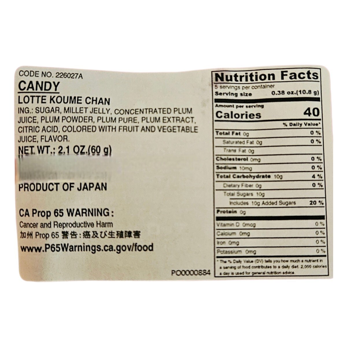 Ingredients: Sugar, millet jelly, concentrated plum juice, plum powder, plum puree, plum extract, citric acid, colored with fruit and vegetable juice, flavor.