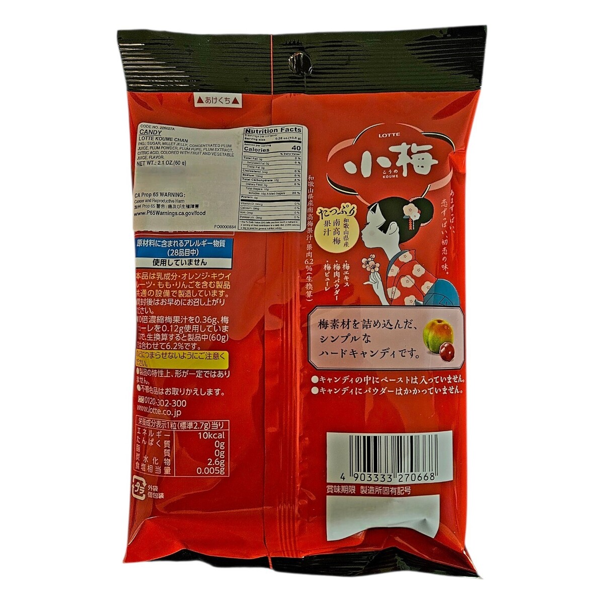 LOTTE KOUME-CHAN Japanese Plum Hard Candy 60G |