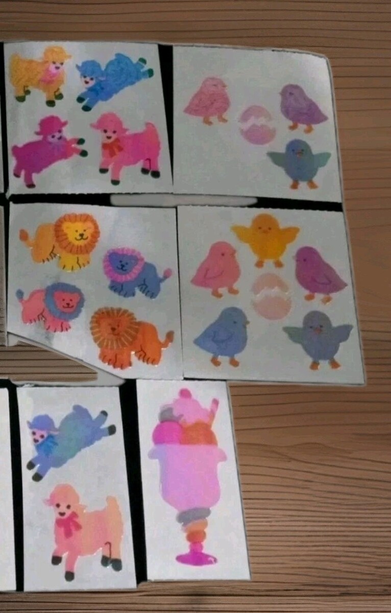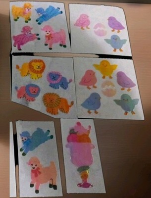 Items are 12pc stickers loose lot of loose psychedelic foil animals and sundae