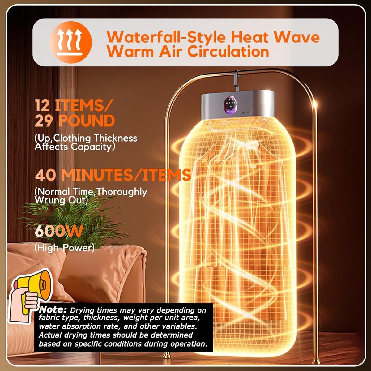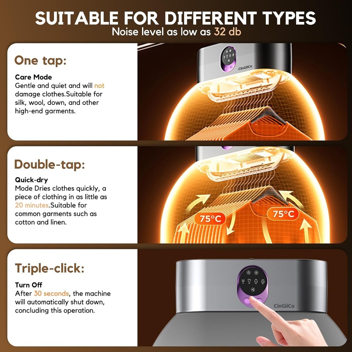 Discover a new level of convenience with the Whisper-Quiet Portable Clothes Dryer, revolutionizing the way you manage laundry. With the ability to dry up to 12 garments at a time, this sophisticated yet compact unit ensures your clothing receives the utmost care. The innovative 3D heat technology allows for a gentle yet effective drying process, making it suitable for even the most delicate fabrics.