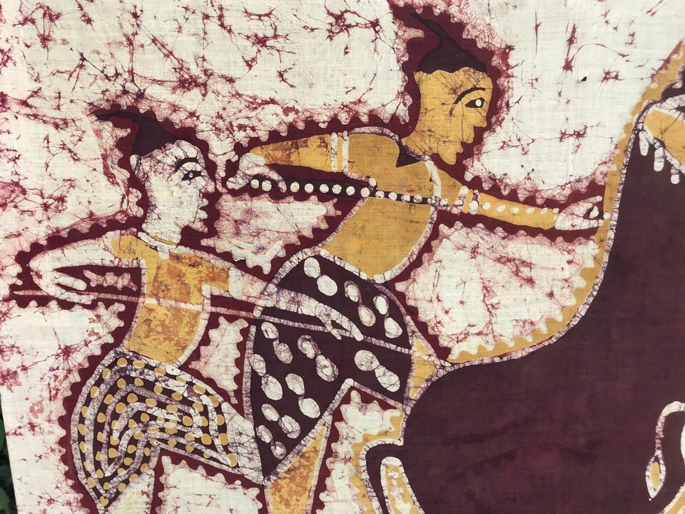 Exotic Vintage Original Fabric Painting