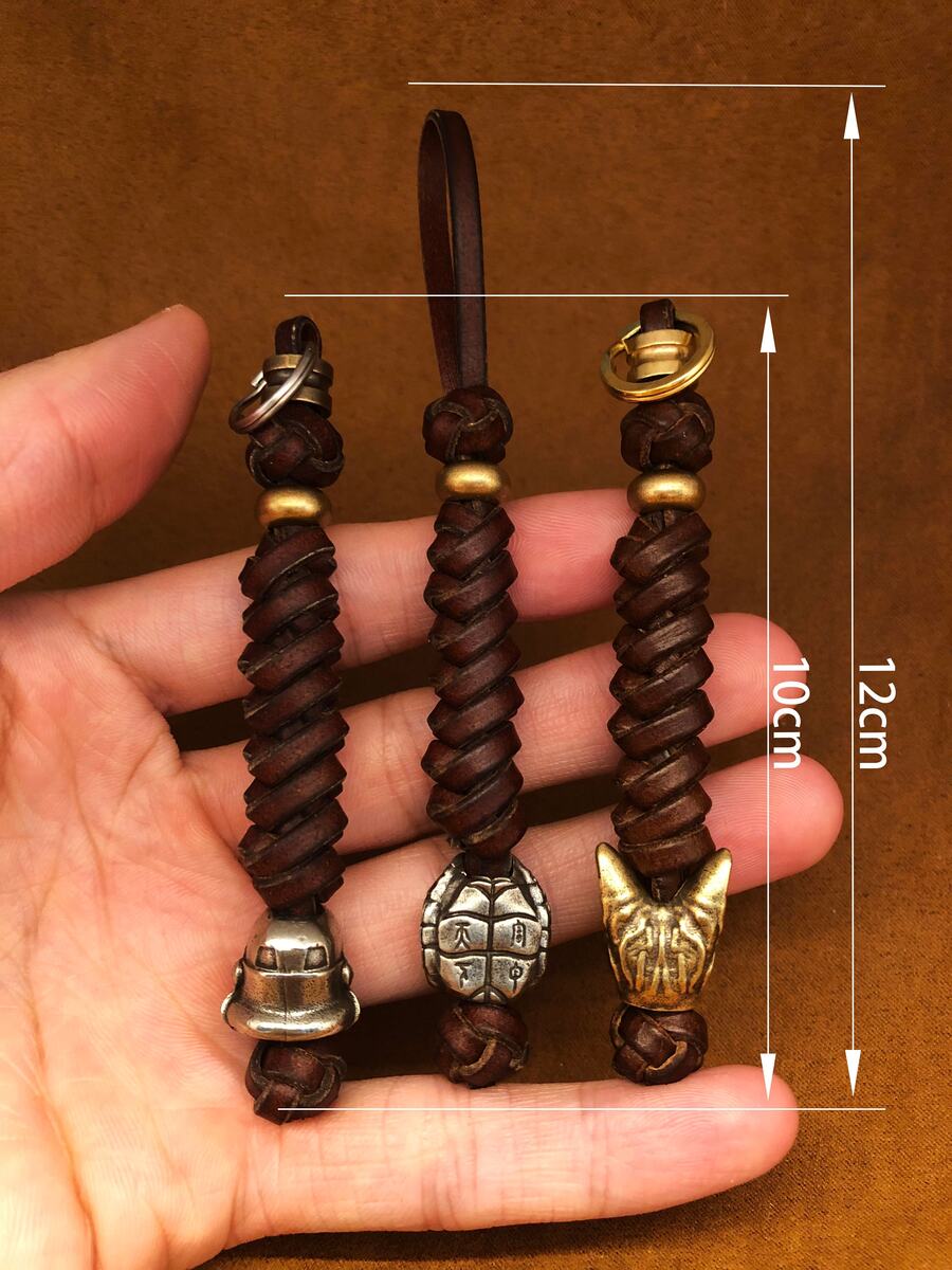 Custom Leather Keychain Lanyard with Copper Beads,Noel Gift