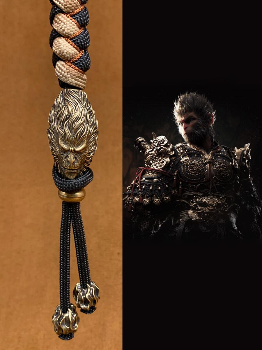 Custom Paracord Keychain: Brass WuKong Bead Lanyard,Paracord Key Fob