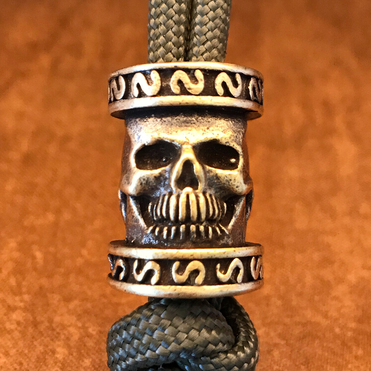 Handmade Brass Skull Lanyard Bead, EDC Charm