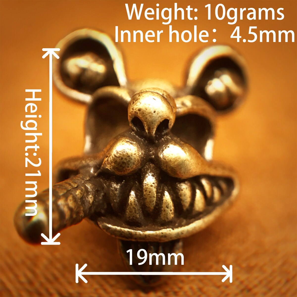 Brass Mouse Bead, Knife Lanyard Charm, EDC Copper Bead