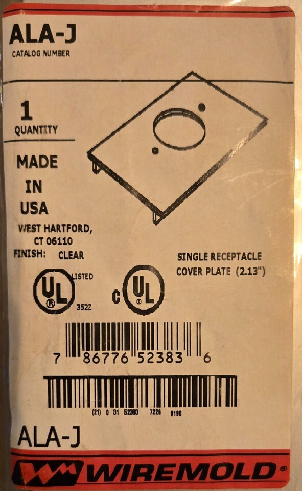 NEW Wiremold Legrand ALA-J ALA3800-Series Single Receptacle Cover Plate Isoduct