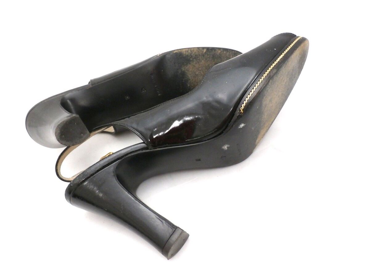 VTG Womens Bruno Magli Black Patent Leather Peep Toe Sling Back Shoes 6M 70S