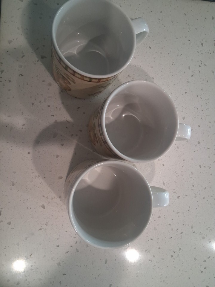 The Sakura Victoria Coffee Mug Cup Pears Fruit Design Stoneware 3 Piece Set Vintage is a charming and unique set of mugs featuring a vineyard pattern with a Victorian style theme. Made of stoneware with a matte finish, these round mugs have a diameter of 3.5 inches and stand at 3.5 inches tall, making them suitable for all occasions. The colorful design of fruits, specifically pears, adds a touch of whimsy to your daily coffee or tea routine. With the brand's original production style, these mugs are sure to bring a vintage and artistic flair to your kitchen.