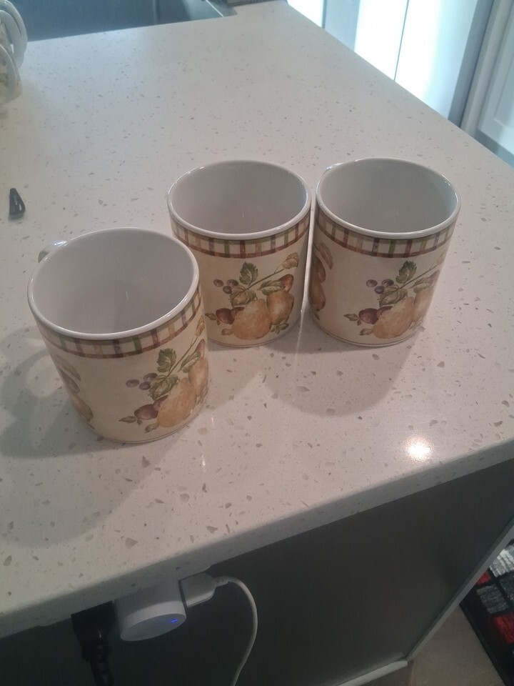 Sakura Victoria Coffee Mug Cup Pears Fruit Design Stoneware 3 Piece Set Vintage