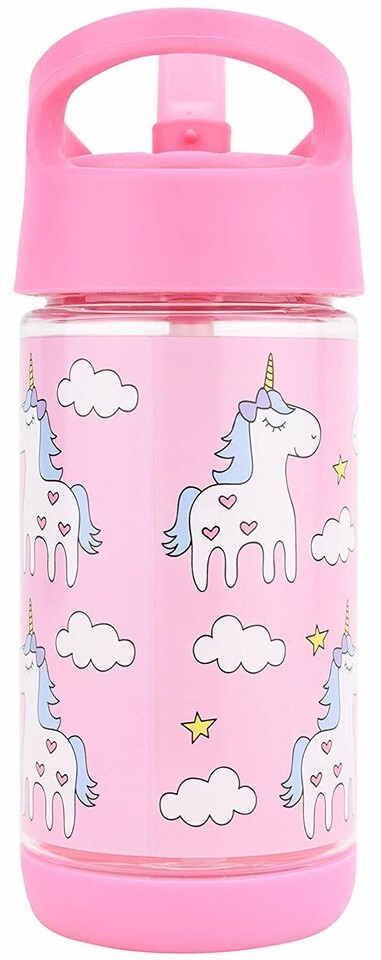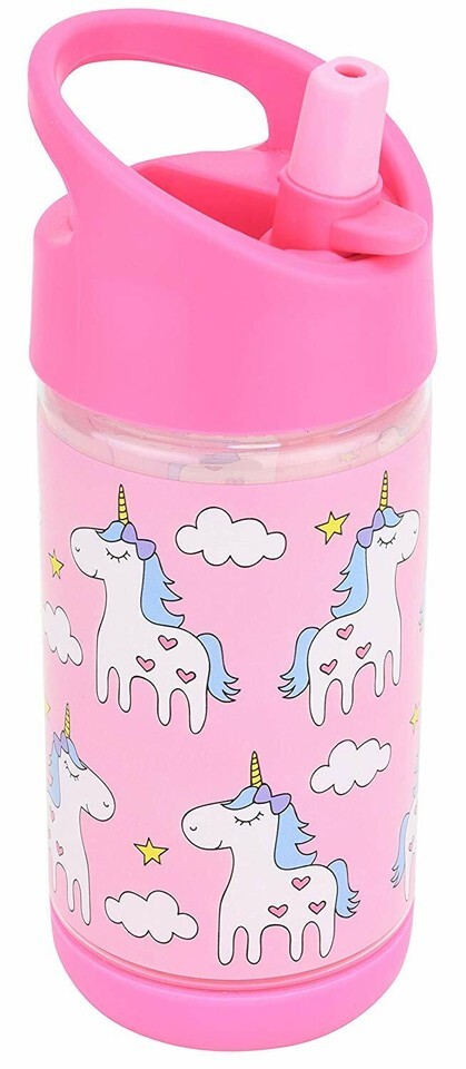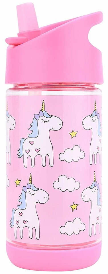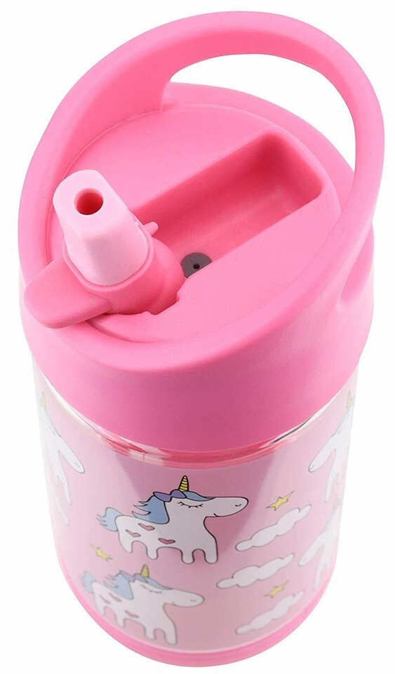 Kids Water Bottle w. Straw, Cute Unicorn Design Girls, Spill Proof, Eco-Friendly