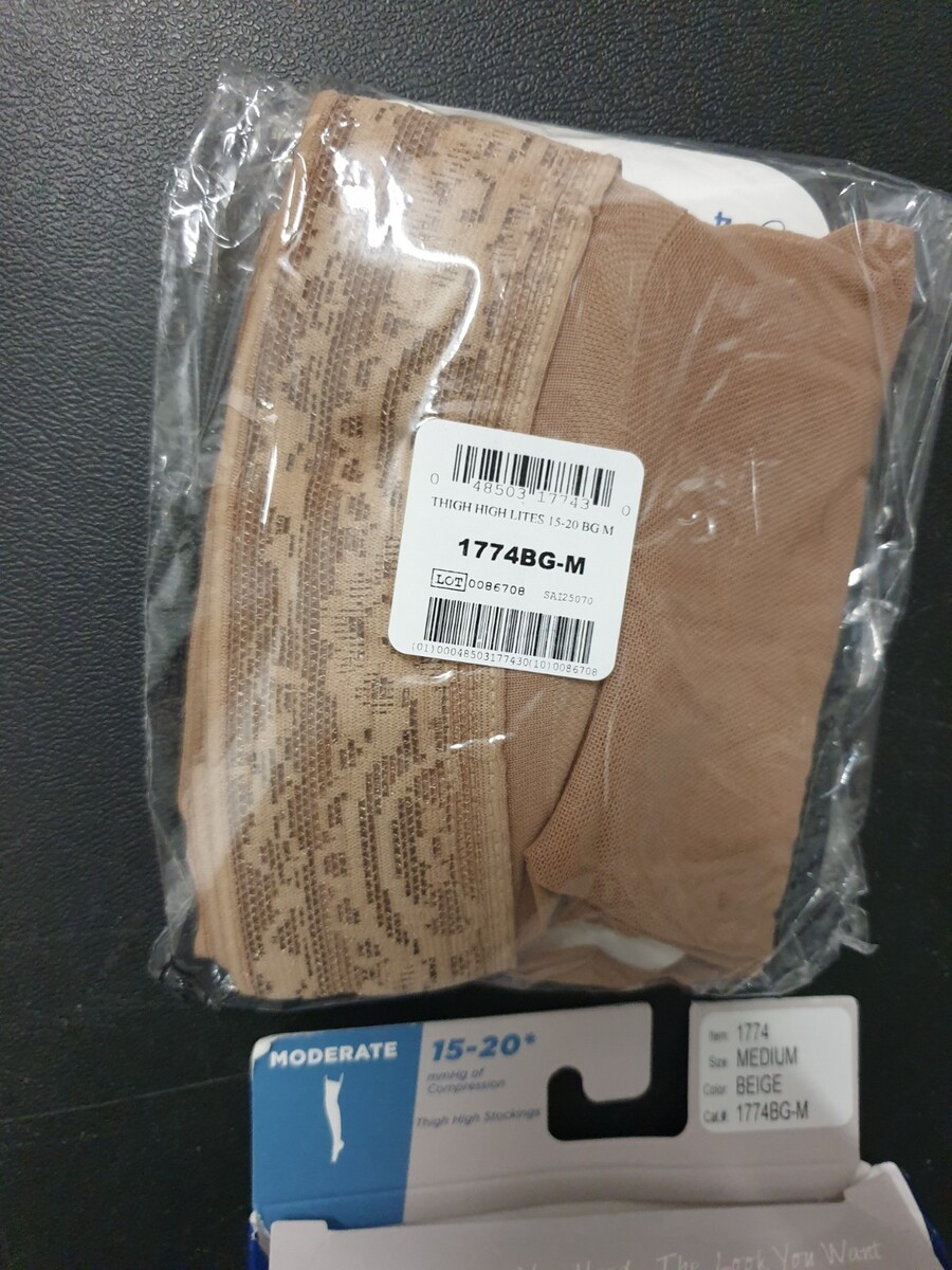 Truform Lites Sheer Stockings Womens M Beige Thigh High Moderate 15-20 mmHg Pair.
