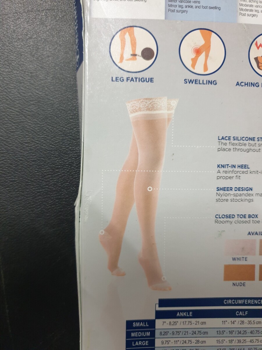 Truform Lites Sheer Stockings Womens Large Nude Thigh High Moderate 15-20 mmHg