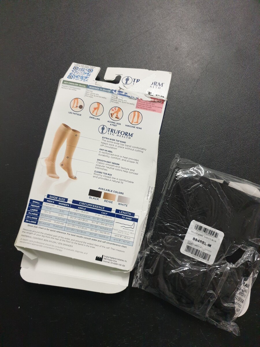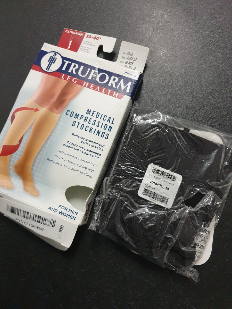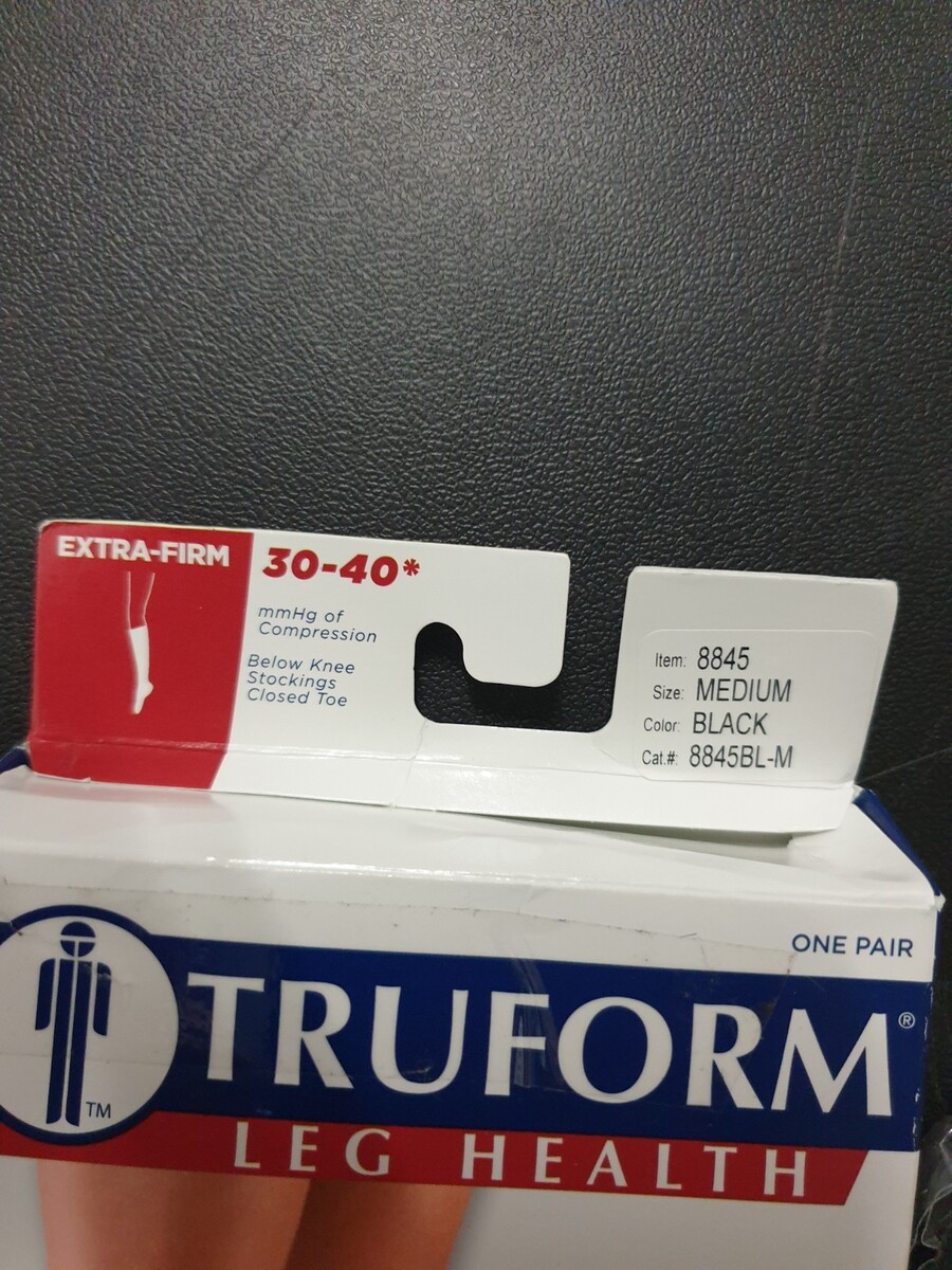 Truform Medical Stockings Unisex M Black High Knee Extra Firm 30-40 mmHg Pair.
