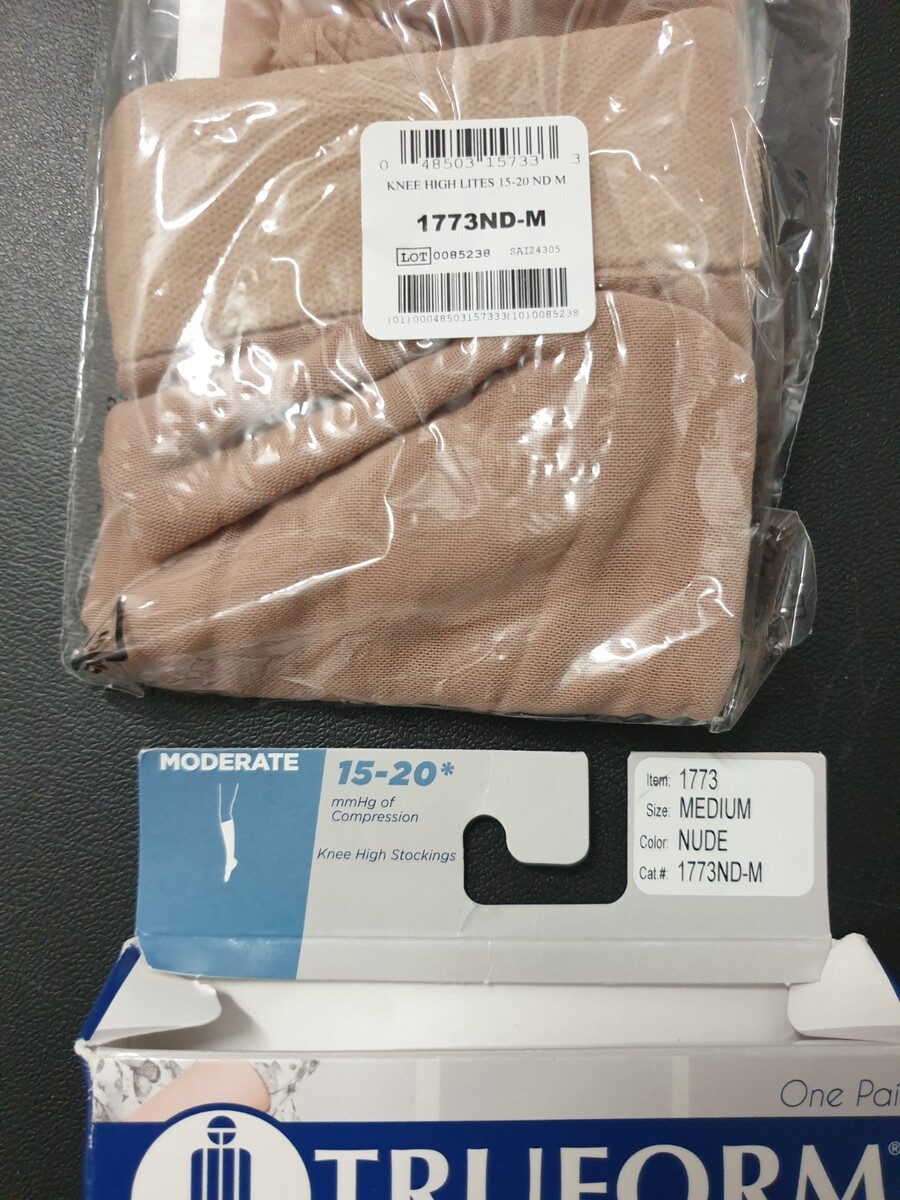 Truform Lites Stockings Womens M Nude Knee High Sheer Moderate 15-20 mmHg Pair.