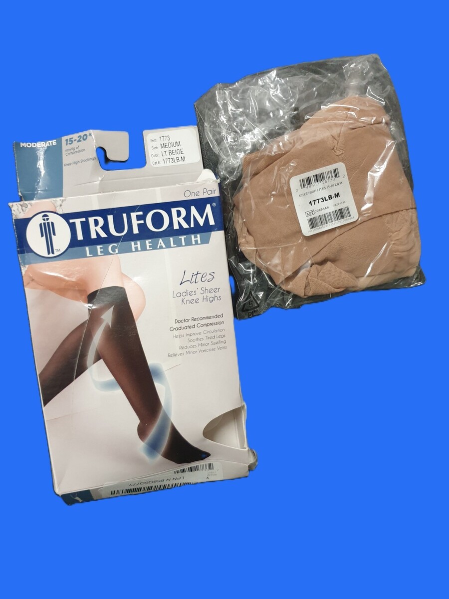 Truform Lites Stockings Womens Medium Light Beige High Moderate 15-20 mmHg Pair.
