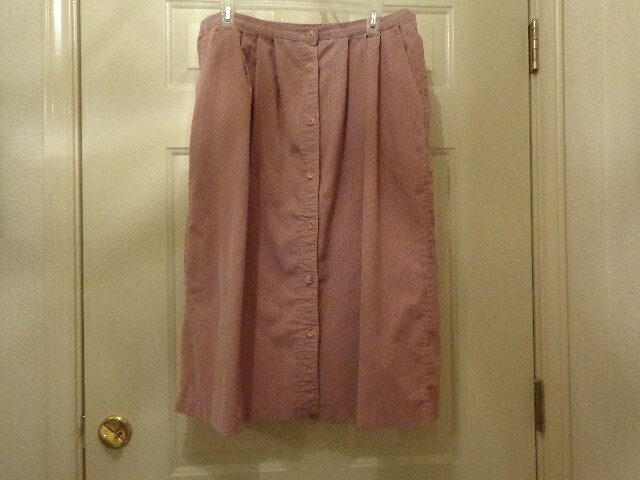 vtg 80s Alfred Dunner Button Down Corduroy Skirt Mauve Pockets Size 14