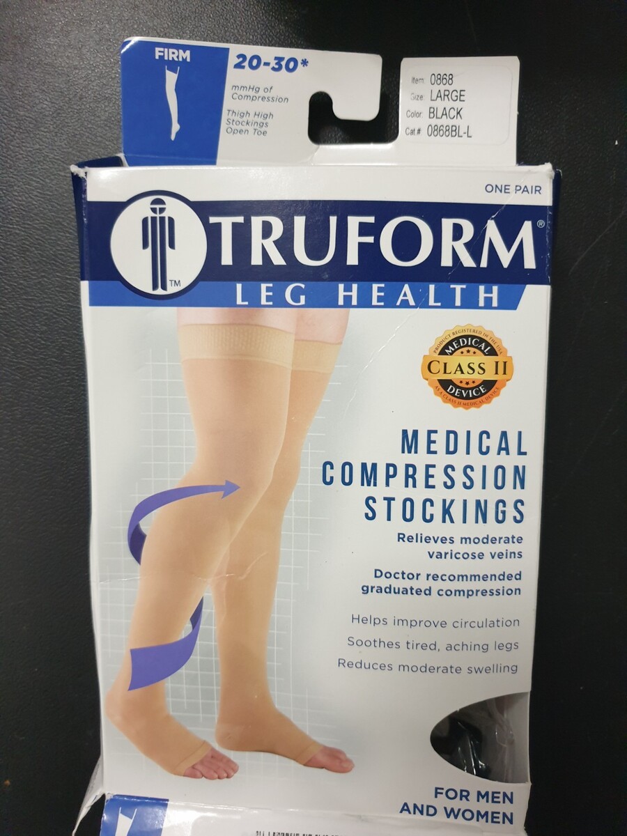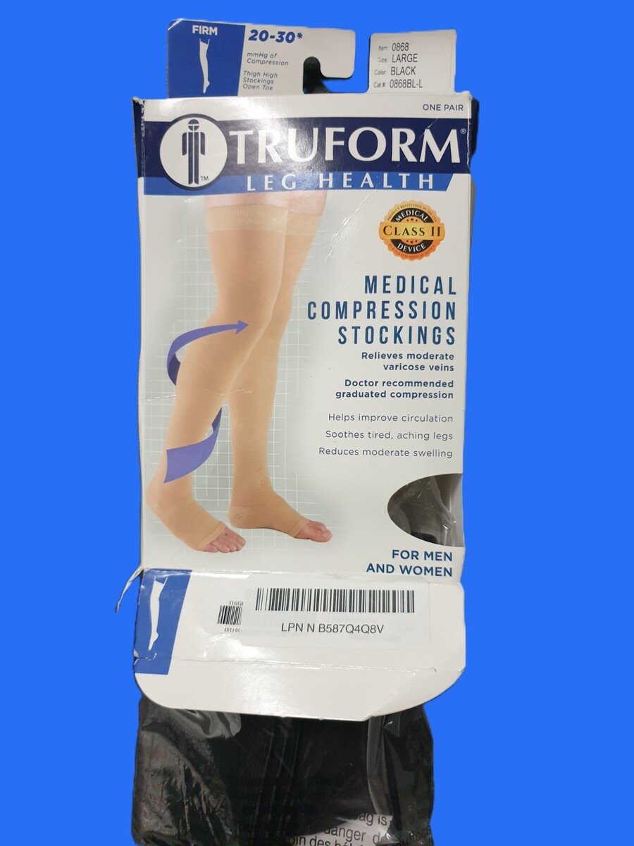 Truform Medical Compression Stockings Open Toe Black Knee High 15-20