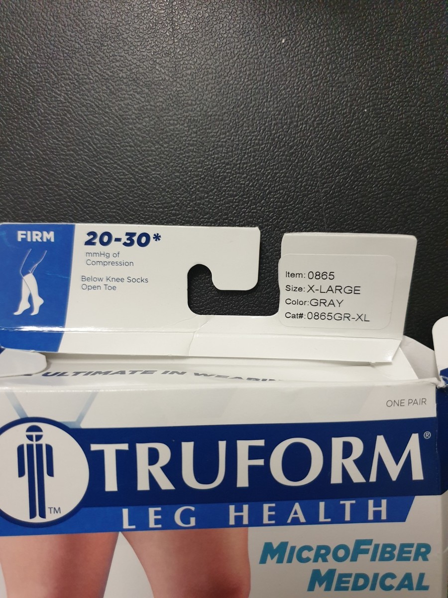 Truform Compression Stockings Open Toe XL Gray Knee High Firm 20-30 mmHg