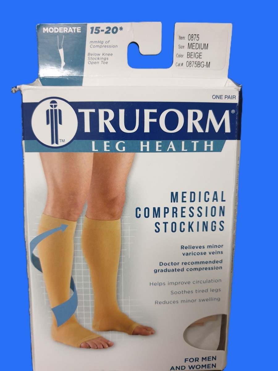 Truform Compression Stockings Open Toe Medium Beige Knee High 15-20 mmHg - Pair