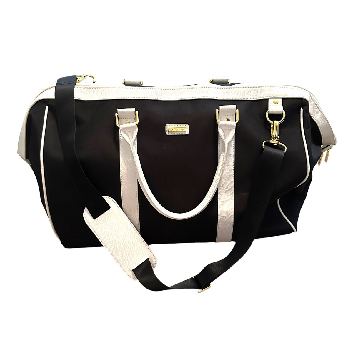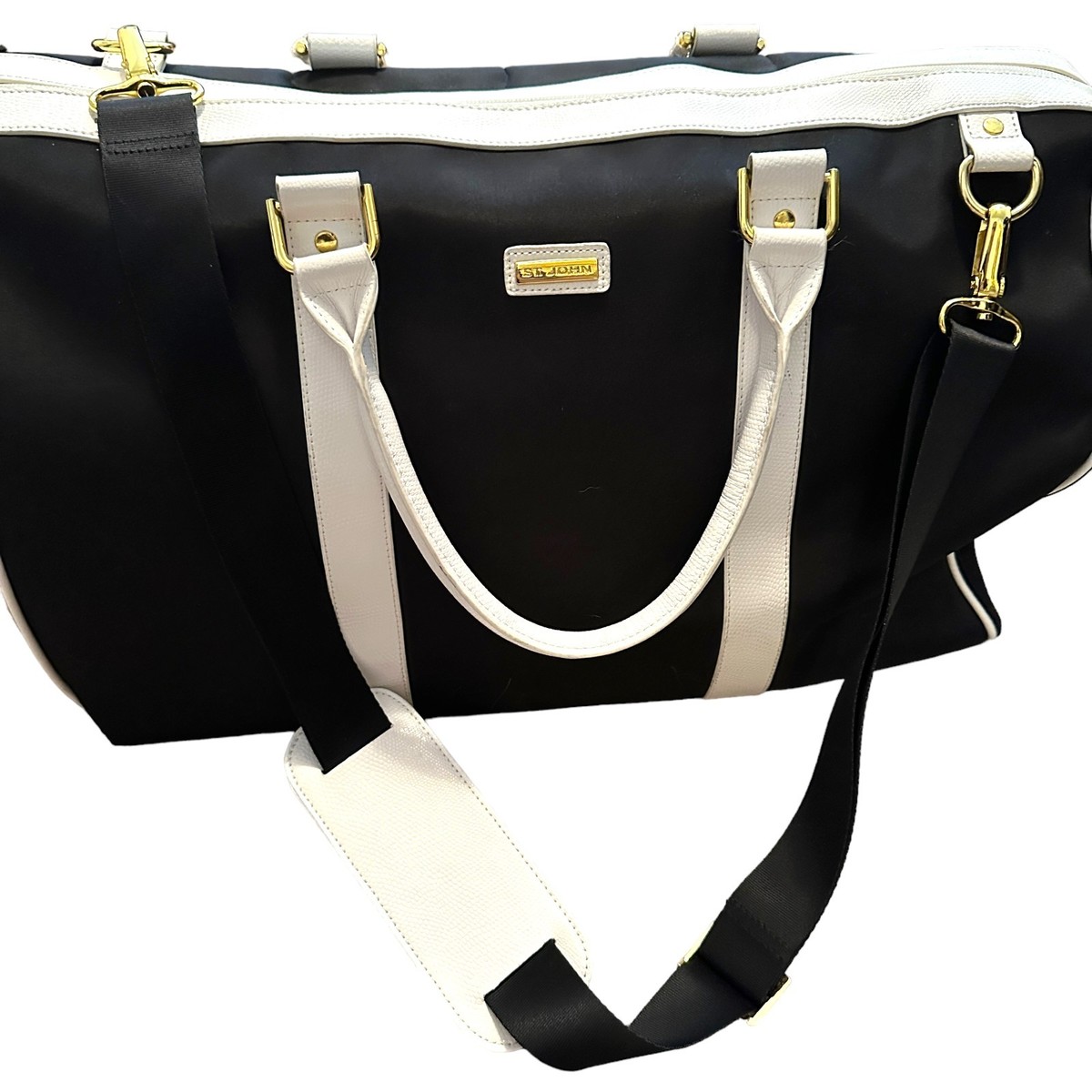 St. John Weekender Bag Overnight Duffel Crossbody Black White