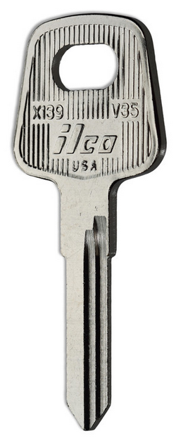 V35 / X139 (also known as Ilco V35, X139, V35-P plastic head variant, JMA AU-AH, Taylor X139, AU8 in some references) is a common non-transponder mechanical key blank used on various Audi, Volkswagen, and some Porsche models from the 1980s and early 1990s.