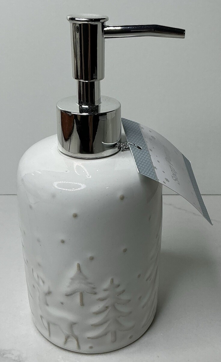 The Global Design Soap Pump is a stylish and practical addition to any bathroom or kitchen. Made from durable resin material, this white soap dispenser features a Christmas theme, making it a festive and decorative piece. With a free-standing design and easy assembly, this soap pump is perfect for adults looking to add a touch of holiday cheer to their home decor. Standing at 8 inches tall, this pump includes one soap dispenser and is a great way to store and dispense your favorite dish soap or hand soap.