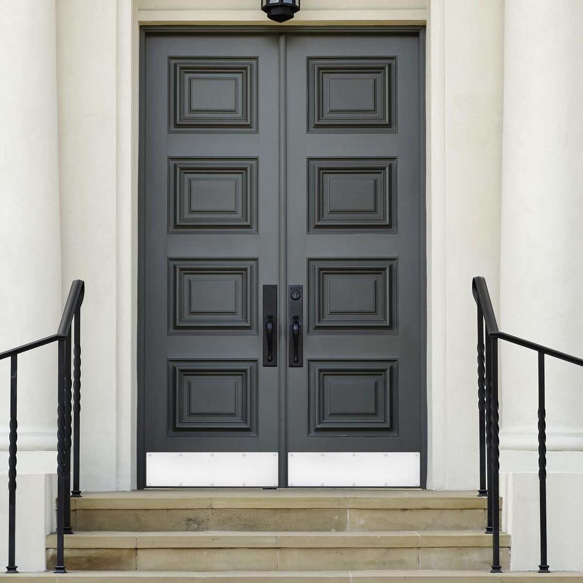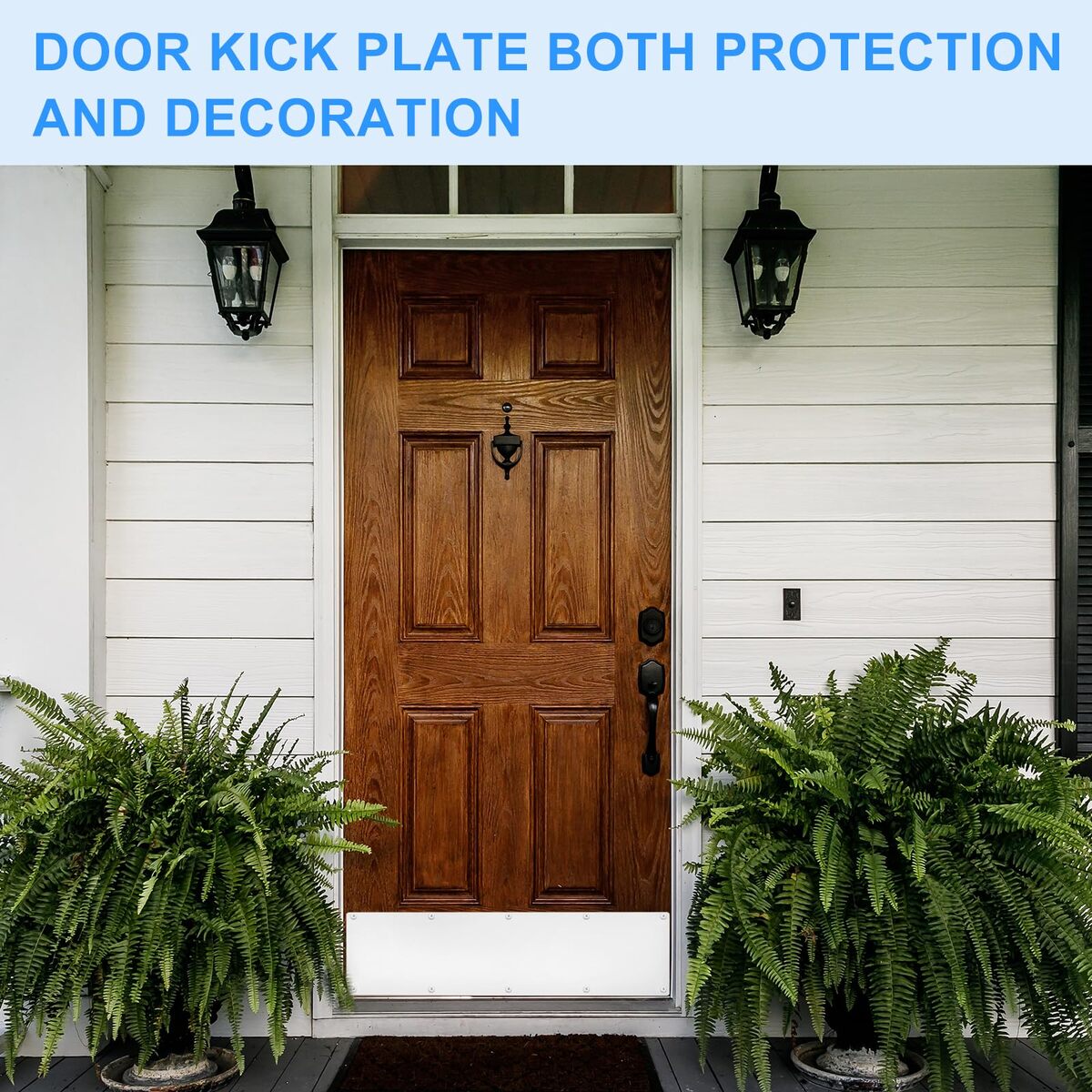 Kick plate for exterior doors like garage doors, back doors, front doors, and mud rooms that fits both modern and traditional styles. Specification: