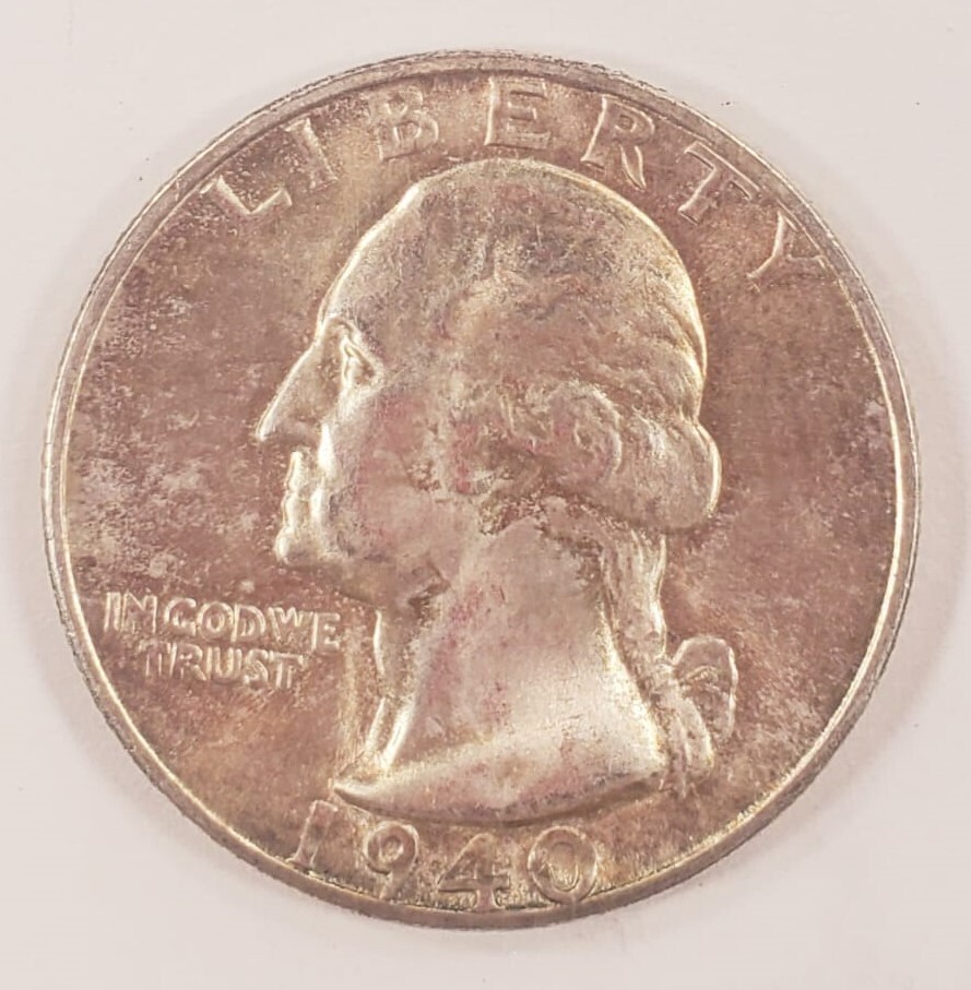 1940-S 25C Washington Quarter in Choice BU Condition, Original BU, Light Toning