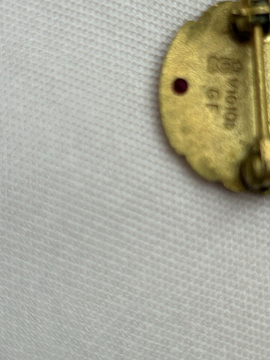Vintage Foremost Gold Tone Award Pin Monarch GF Pink Rhinestone