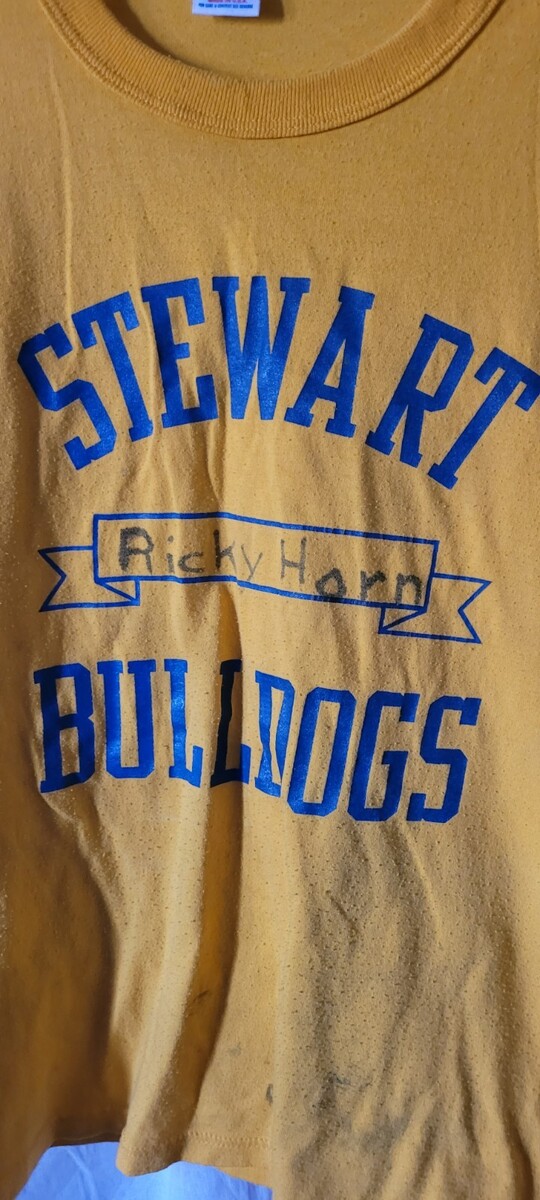 VTG Men's Russell Athletics T-Shirt M Stewart Middle School Yellow Collectible