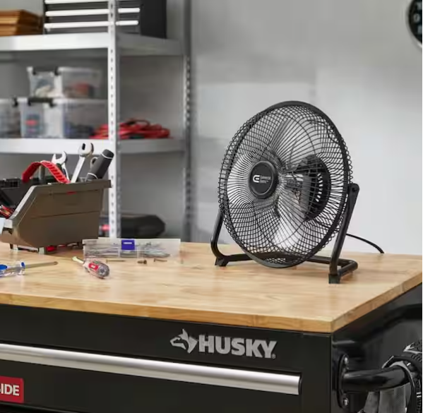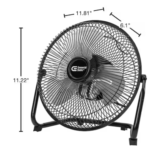 This Commercial Electric 9 in. 3-Speed High Velocity Floor Fan is ideal for use in the home, garages, basements, etc. A 360 adjustable tilt range frame allows you to customize your airflow direction as needed . This high-powered fan offers quiet operation at each of its 3-speeds, while a rotary switch allows for easy control over the airflow. Whether you need a gentle breeze or a more focused cooling effect, this fan allows you to easily customize the airflow direction, ensuring optimal circulation and personalized comfort. Features an easy-carry handle and wall-mount option to meet all of your needs!