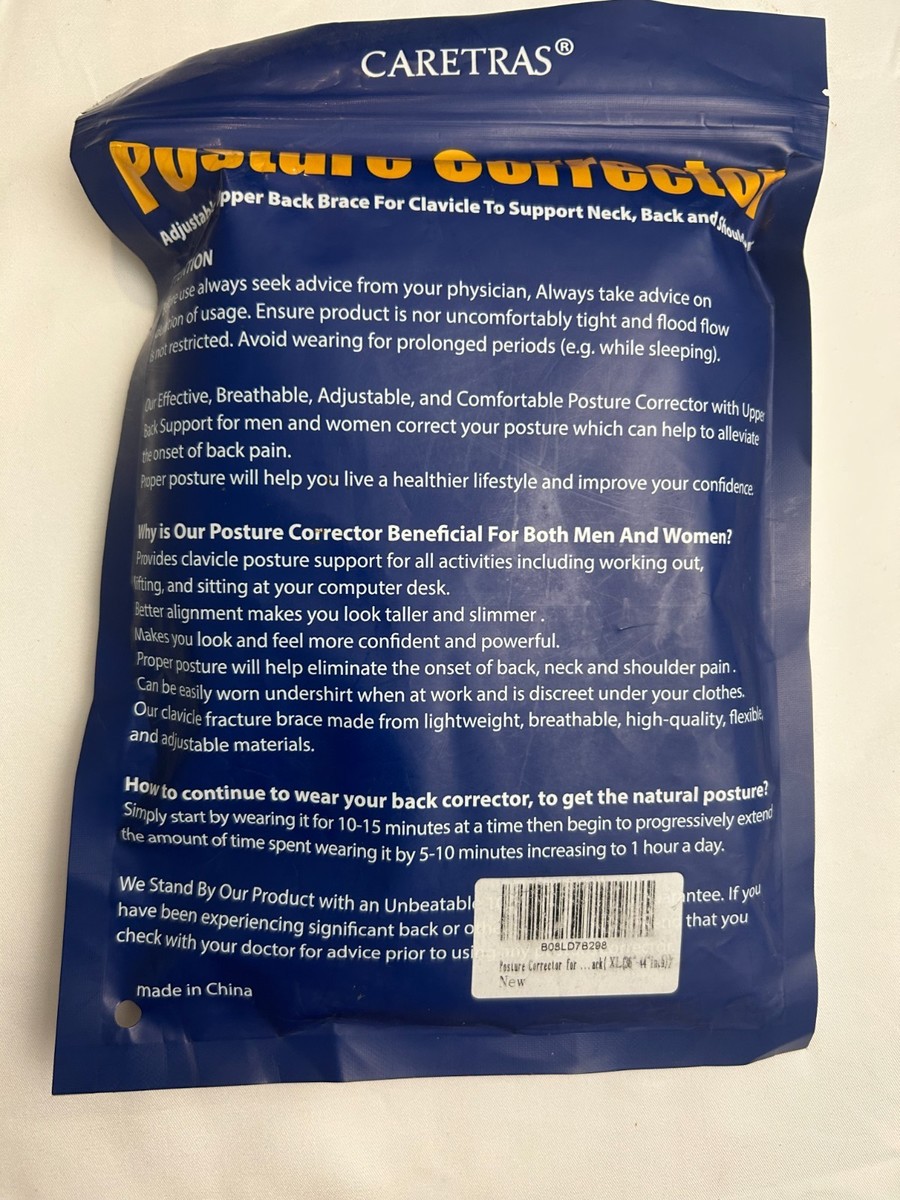 Posture Corrector Adjustable Upper Support Back Shoulder Brace XL 36-44 Caretras