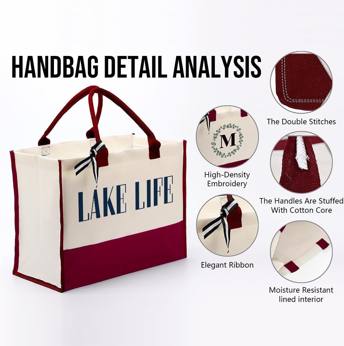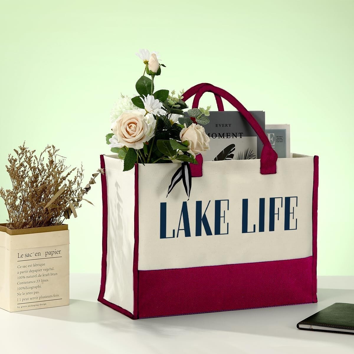 EDCTO Canvas Beach Tote Bag Cotton Reusable Birthday Gifts Lake Life for Women