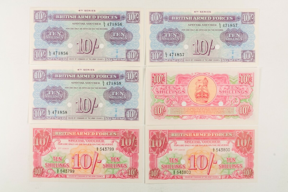 Great Britain military notes. British Armed Forces, special voucher. 23 note, both consecutive numbered and singles.