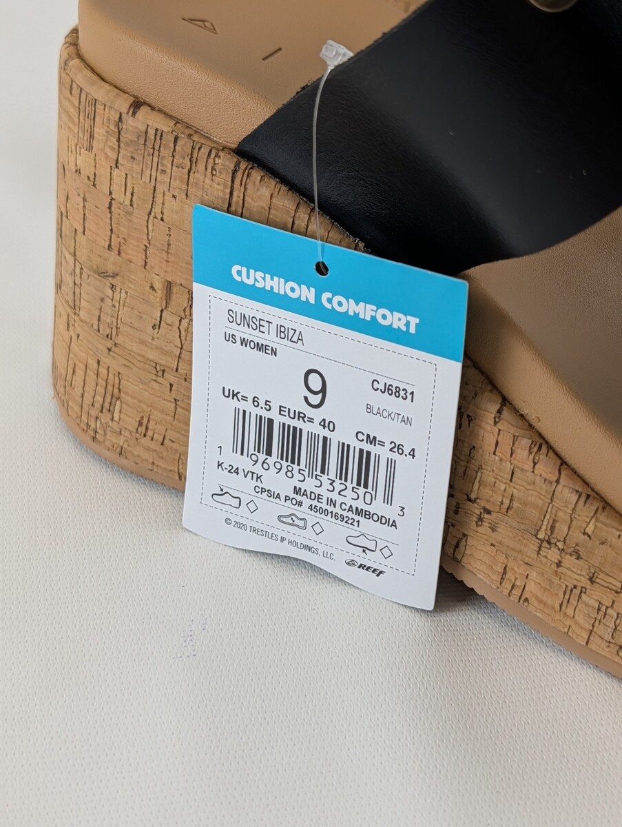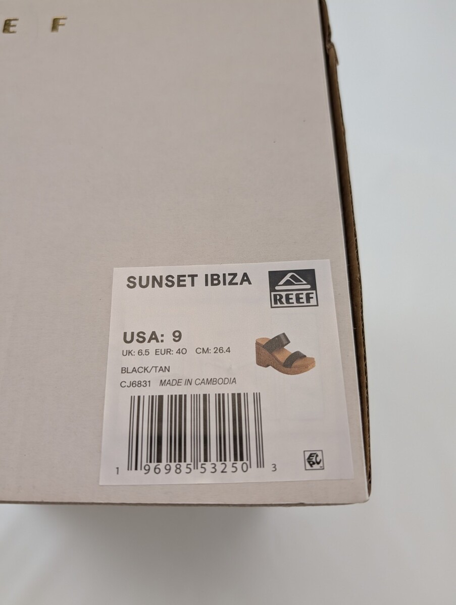 Reef Sunset Ibiza Wedge Sandals Women?s Size 9 Black Tan Summer Coastal Straps. Condition is New with box. Shipped with USPS Ground Advantage.