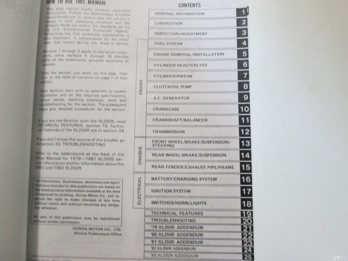 1982 1983 Honda XL250S Xl 250 S Service and 49 similar items