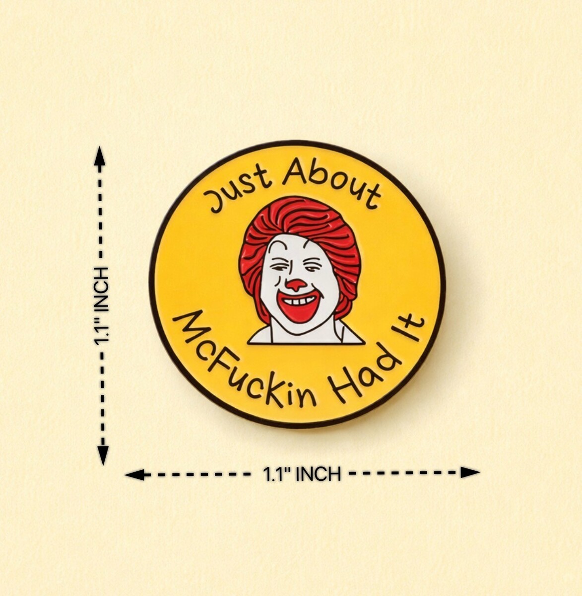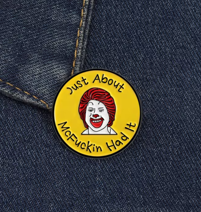 Just About McF*ckin Had It Enamel Pin ✩ Funny Ronald McDonald Parody! McDonalds!