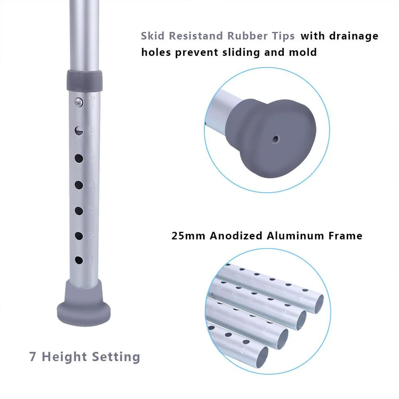 Tool-free Design. Supports up to 330 lbs. 7 Height Adjustments. Made of lightweight aluminum construction. Non-slip rubber feet. Slip-resistant seat with drainage holes. It has passed the SGS, CE and the FDA authentication.