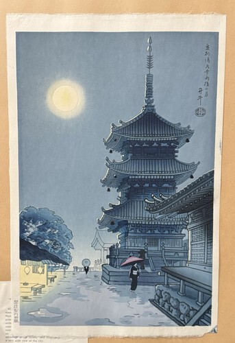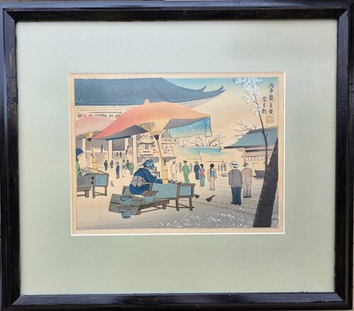 To earn a living, Tokuriki also created shin hanga, Japanese landscapes and popular scenes that appealed to tourists and wealthy collectors. Following World War II he established the Matsukyu Publishing Company, printing and publishing his own works as well as other sosaku and shin hanga artists. This helped secure his place in Kyoto as a leading contemporary printmaker and he soon exhibited throughout Japan and Europe, and in the 1960's he opened several exhibitions of his artworks in major US cities Chicago, New York, Pittsburgh and Cleveland.
