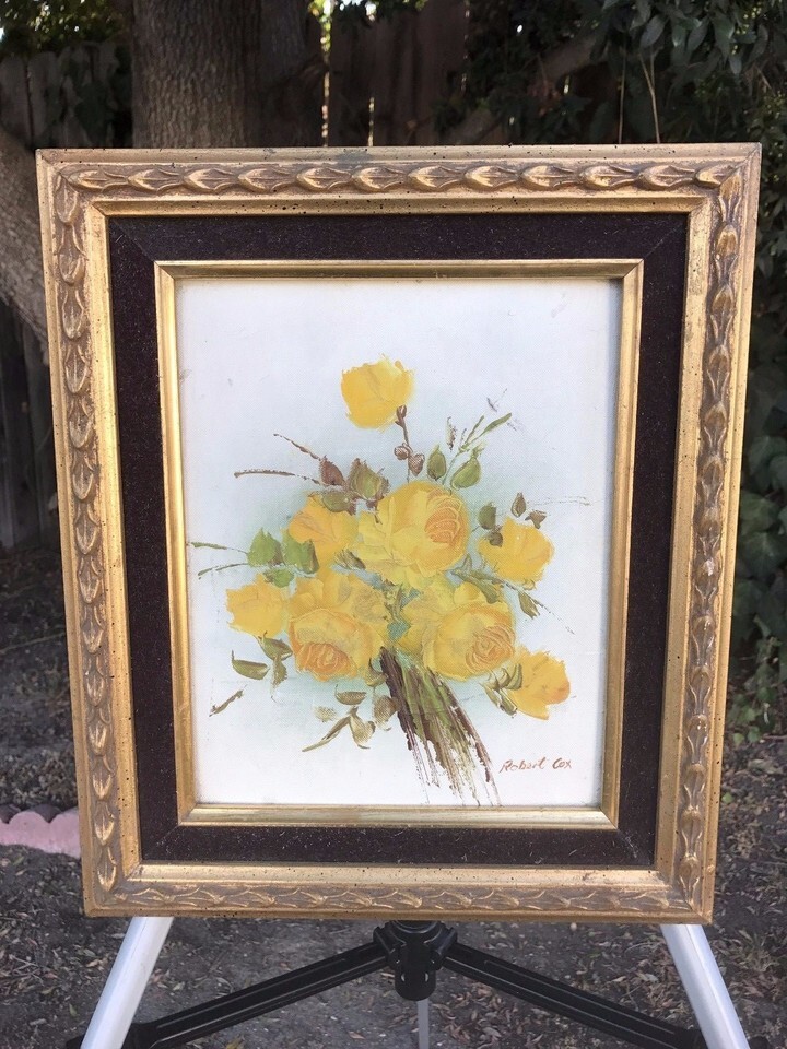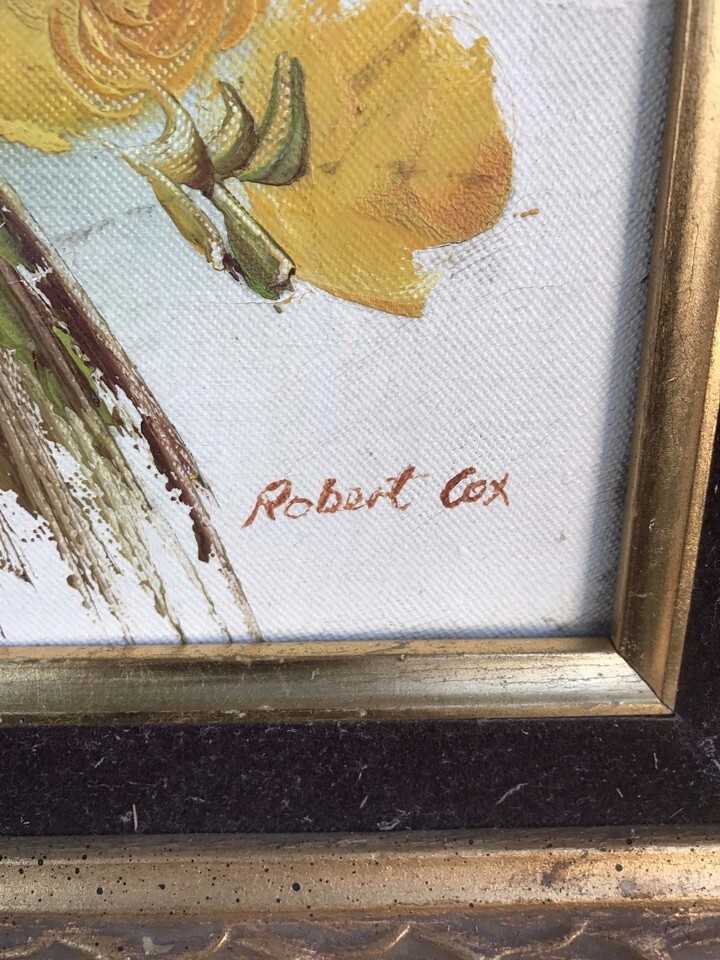 ROBERT COX Original Floral Oil Painting on Board 1970s Vintage Signed & Framed