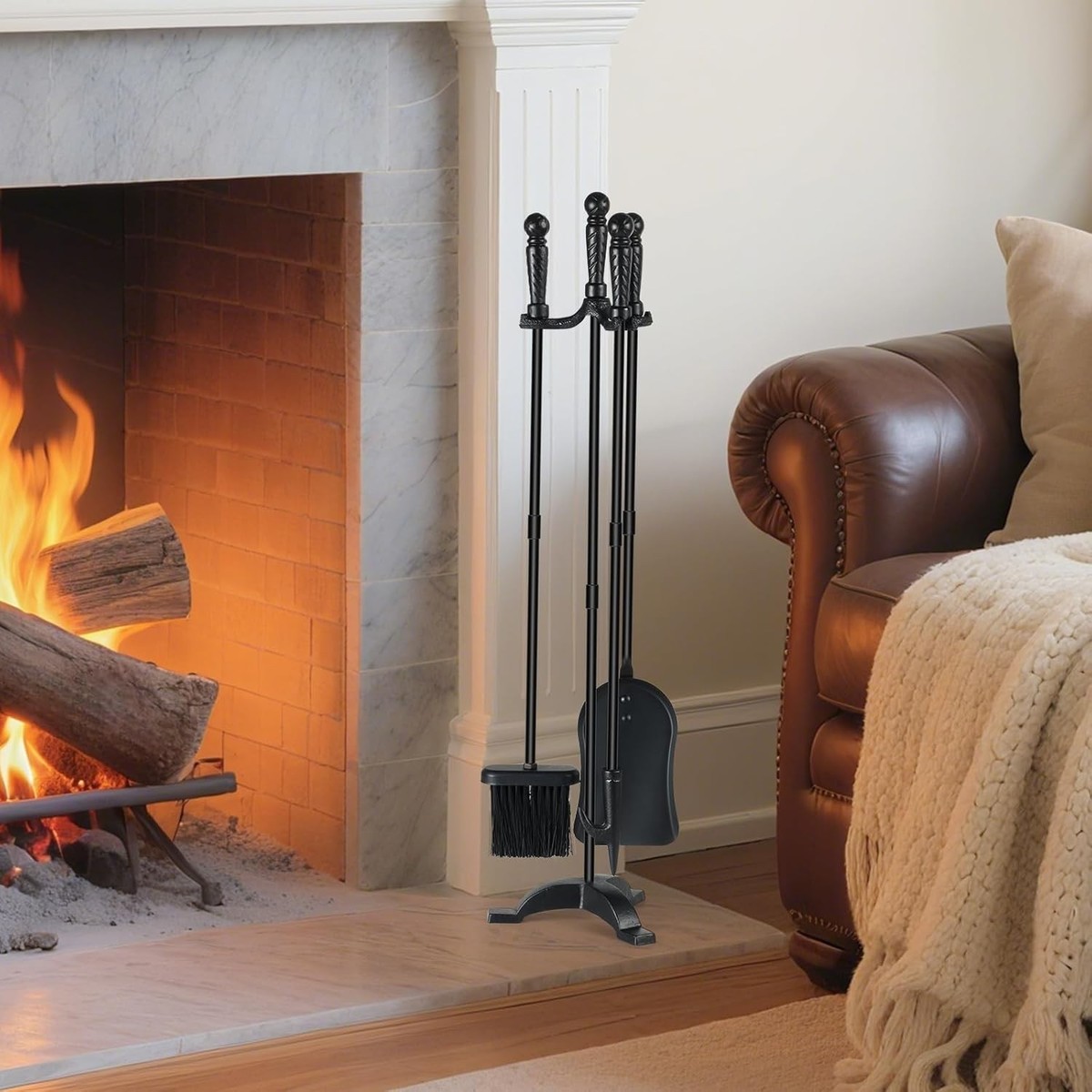 4 Pieces: Poker, Shovel, Brush, and Heavy Duty Stand