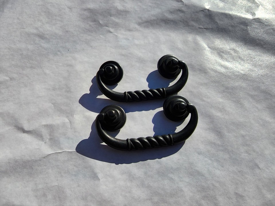 10 pcs. of Drop Handle Drawer Pull/Handle 3-1/4" Hole Centers Dark Bronz/Black Bronz Finish These were packed in bulk boxes and are surplus from a furniture manufacture
